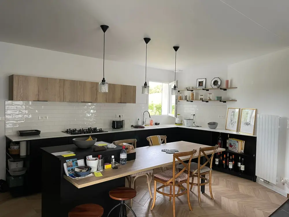 Découvrez l'expertise de M.E.R Habitat à travers notre album photo dédié à un projet d'agrandissement de cuisine à Latresne (33), en Gironde. Spécialisés en rénovation, nous avons repris les cloisons, les murs et le plafond pour agrandir et moderniser l'espace.