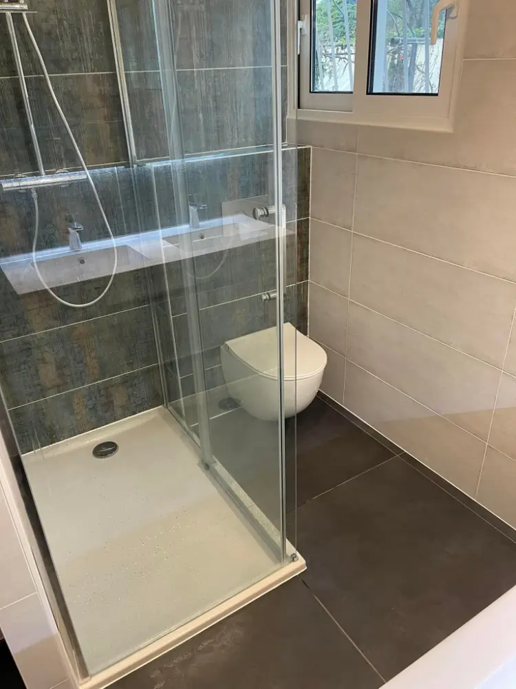 M.E.R Habitat, votre spécialiste en rénovation intérieure à Arès (33), est fier de vous présenter son dernier projet : la transformation complète d'une salle de bain. Nous avons réalisé une rénovation de grande qualité, incluant la création d'une douche à l'italienne et l'aménagement sur mesure avec installation de meubles modernes et fonctionnels.