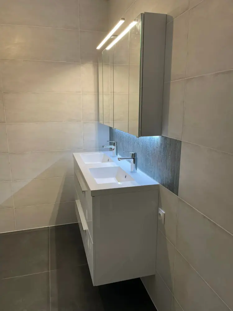 En complément de la création de la douche à l'italienne, nous avons aménagé la salle de bain avec des meubles sur mesure, optimisant ainsi l'espace et la fonctionnalité. Chaque meuble a été soigneusement sélectionné et installé pour répondre aux besoins spécifiques de nos clients, tout en s'intégrant harmonieusement dans le design global de la pièce. Le résultat est une salle de bain moderne, pratique et stylée.