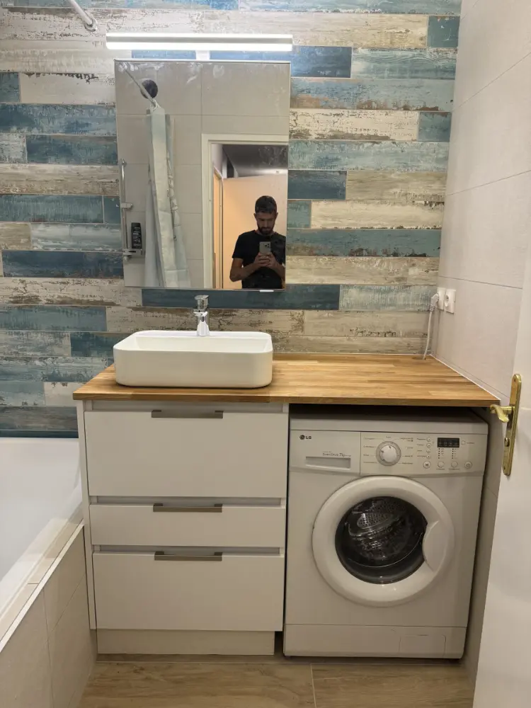 - Pose d’une baignoire avec un plan de travail sur mesure en chêne : une touche d’élégance et de personnalisation pour une salle de bain unique.